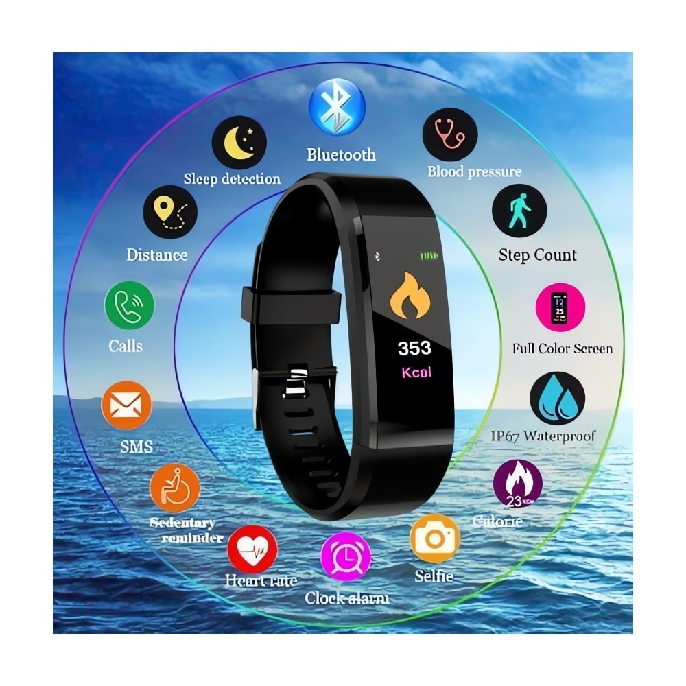 Terveytesi seuraamiseen Kauneusmaailman uusi ID115Hr Plus upea aktiivisuusranneke on varustettu sykemittarilla & laadukkaalla 0.96" OLED-näytöllä. Toimii sekä android että Applen IOS käyttöjärjestelmien kanssa. Sensoria ympäröi alumiininen runko yhdistettynä silikoniseen, hyväntuntuiseen ja hikeä hylkivään rannekkeeseen. Itse älyranneke on IP67-vesiroiskesuojattu, joten hikipisarat eivät menoa haittaa.