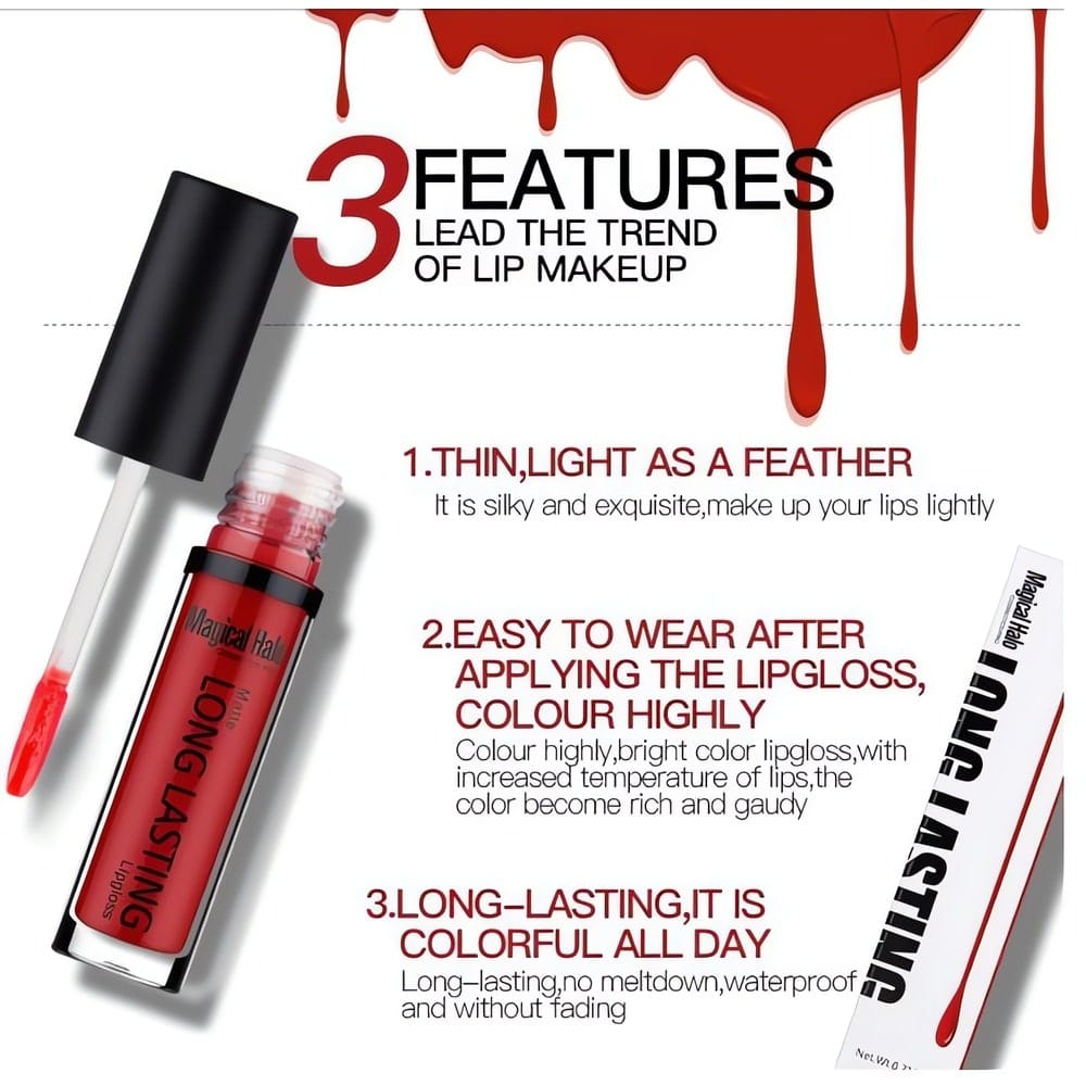 Miksi valita Magical Halo?Tämä tuote on luotu kestämään – se ei tahmaa, ei sotke eikä vaadi jatkuvaa korjailua päivän aikana. Sen runsaspigmenttinen koostumus peittää huulet tasaisella värillä jo yhdellä vedolla ja kuivuu nopeasti upeaksi mattapinnaksi. Se on erinomainen valinta niin arkeen kuin juhlaan, kun haluat huulimeikin pysyvän siistinä aamusta iltaan.