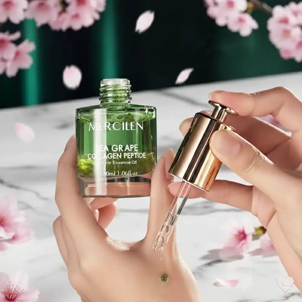 Käyttöohje: Puhdistuksen jälkeen ravista pulloa kevyesti tasaisen seoksen aikaansaamiseksi. Ota sopiva määrä tuotetta kämmenelle, purista “merirypälehelmet” hellästi rikki sormin ja sekoita öljyyn. Levitä tasaisesti kasvojen ja kaulan iholle kevyesti hieroen, kunnes tuote on imeytynyt.