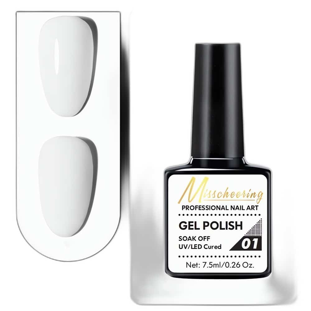 Misscheering Professional Nail Art Gel Polish sävyssä 01 Elegant White on jokaisen kynsiartistin ja kotimanikyristin välttämätön luottotuote. Tämä klassinen, kirkkaanvalkoinen geelilakka tarjoaa poikkeuksellisen peittävyyden ja ammattimaisen lopputuloksen, joka kestää viikkoja.