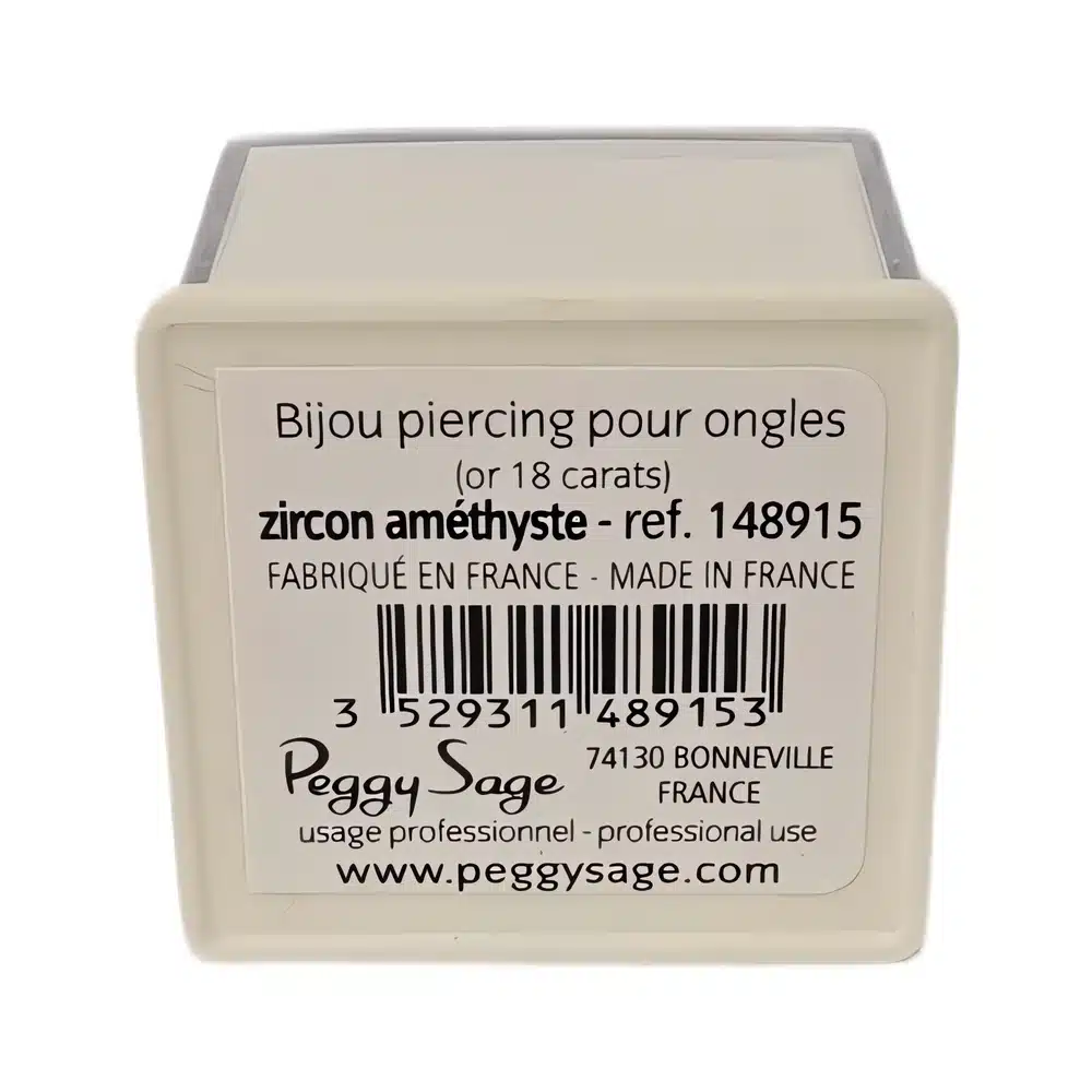 Ylellinen Peggy Sage kynsilävistyskoru (18K kultaa). Violetti ametistizirkoni tuo kynsiin kuninkaallista loistoa. Aito ranskalainen laatu ammattikäyttöön.