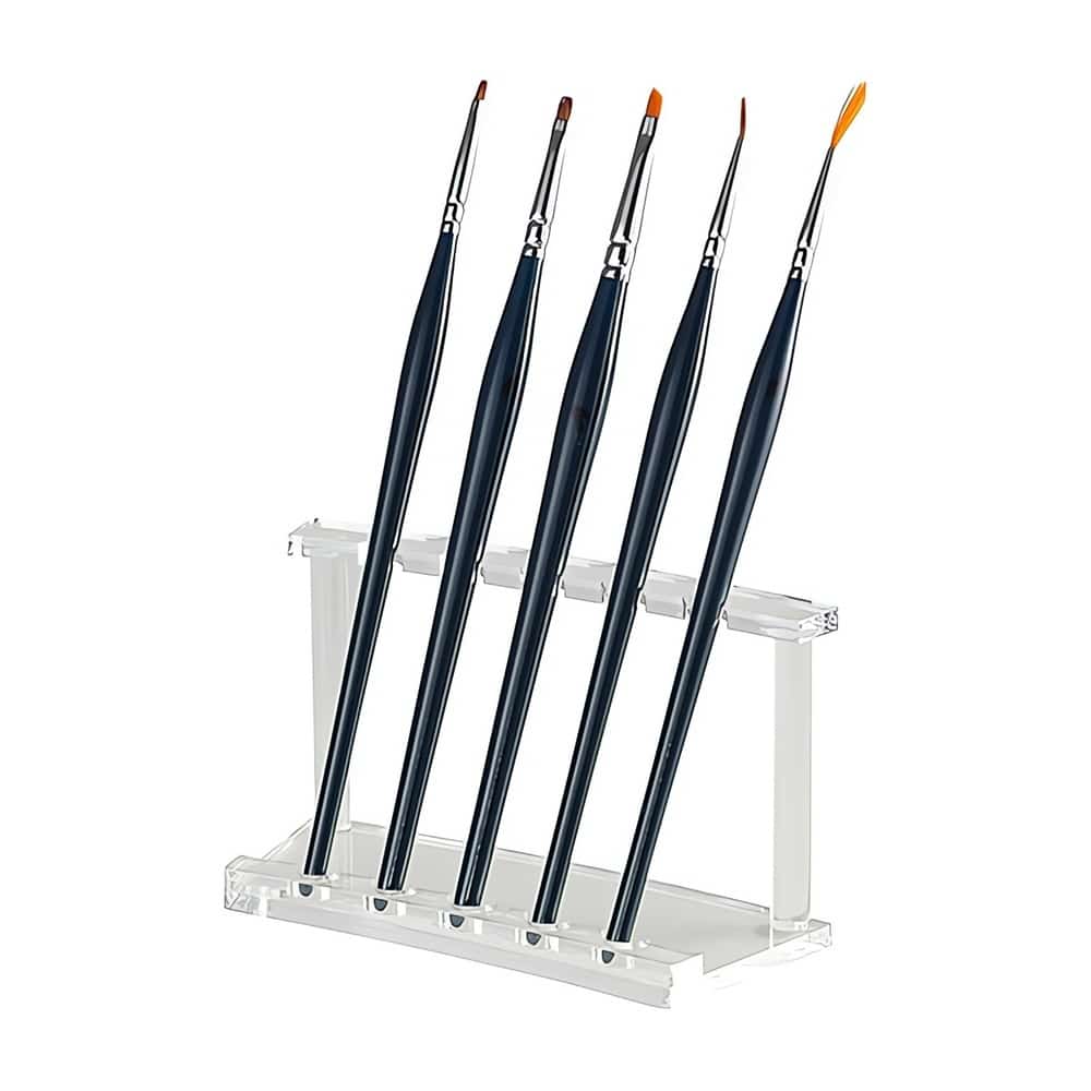 - Viisi erillistä pidikettä: Telineessä on paikat viidelle siveltimelle, joten saat eroteltua esimerkiksi geeli-, akryyli- ja koristelusiveltimet selkeästi toisistaan.