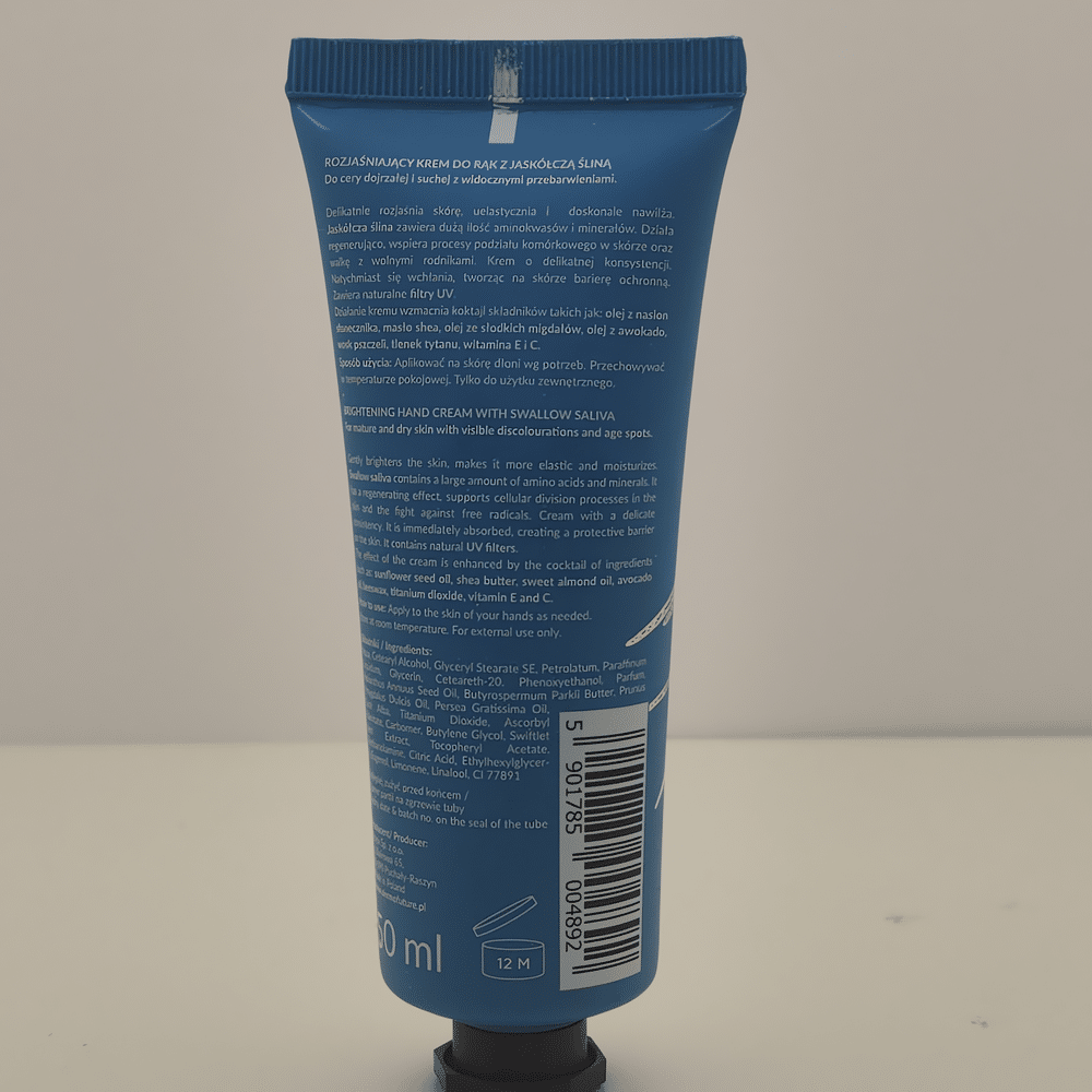 pääskysensylkiuute-käsivoide aikuiselle iholle. Kirkastaa pigmenttiläiskiä, kosteuttaa ja uudistaa tehokkaasti.